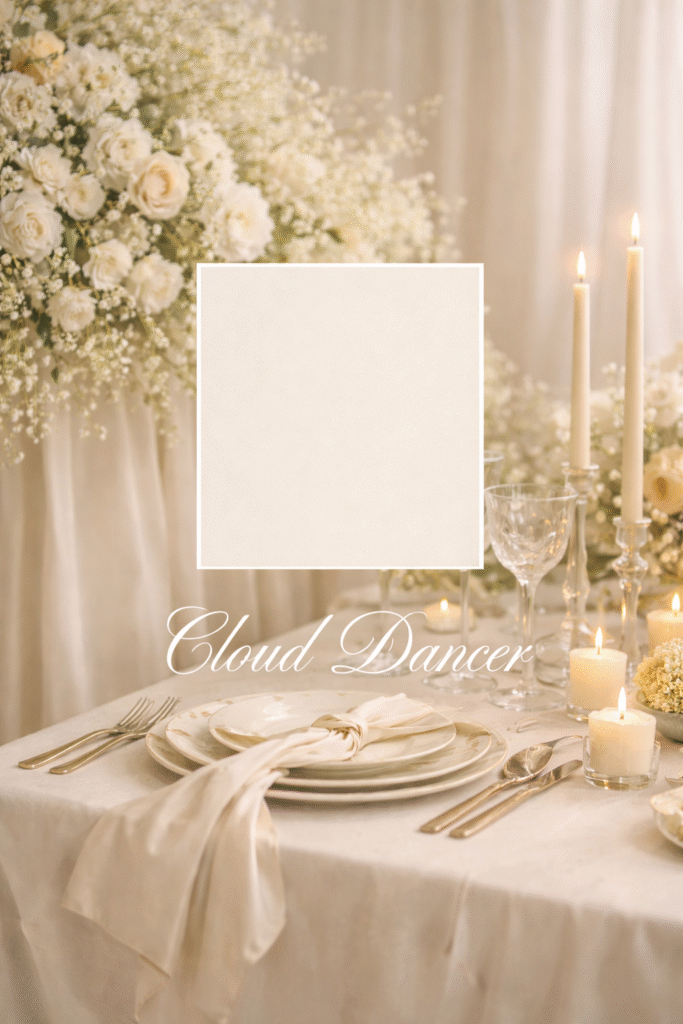 Soft and luminous, Cloud Dancer is a modern expression of timeless white. It brings calm, purity, and effortless elegance to wedding design. Ideal for destination weddings, daytime ceremonies, and refined minimal settings, this shade highlights texture, light, and graceful movement.